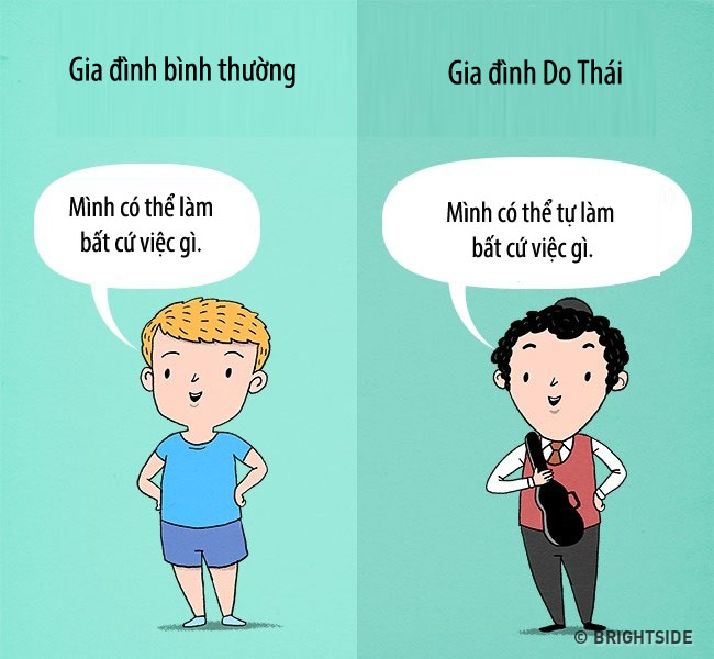 Trong khi phần lớn cha mẹ tin rằng trẻ sẽ thành công nếu chúng tin rằng chúng có thể làm bất cứ điều gì thì bố mẹ Do Thái thấy việc trẻ chắc chắn tự làm được mọi việc là quan trọng hơn. Ở các quán cafe ở Israel, người ta thấy nhan nhản những em nhỏ ngồi ăn món bít tết của riêng mình. Điều này là bởi trẻ ở đây được phép làm bất cứ điều gì ngay khi chúng có thể chất đủ khả năng.