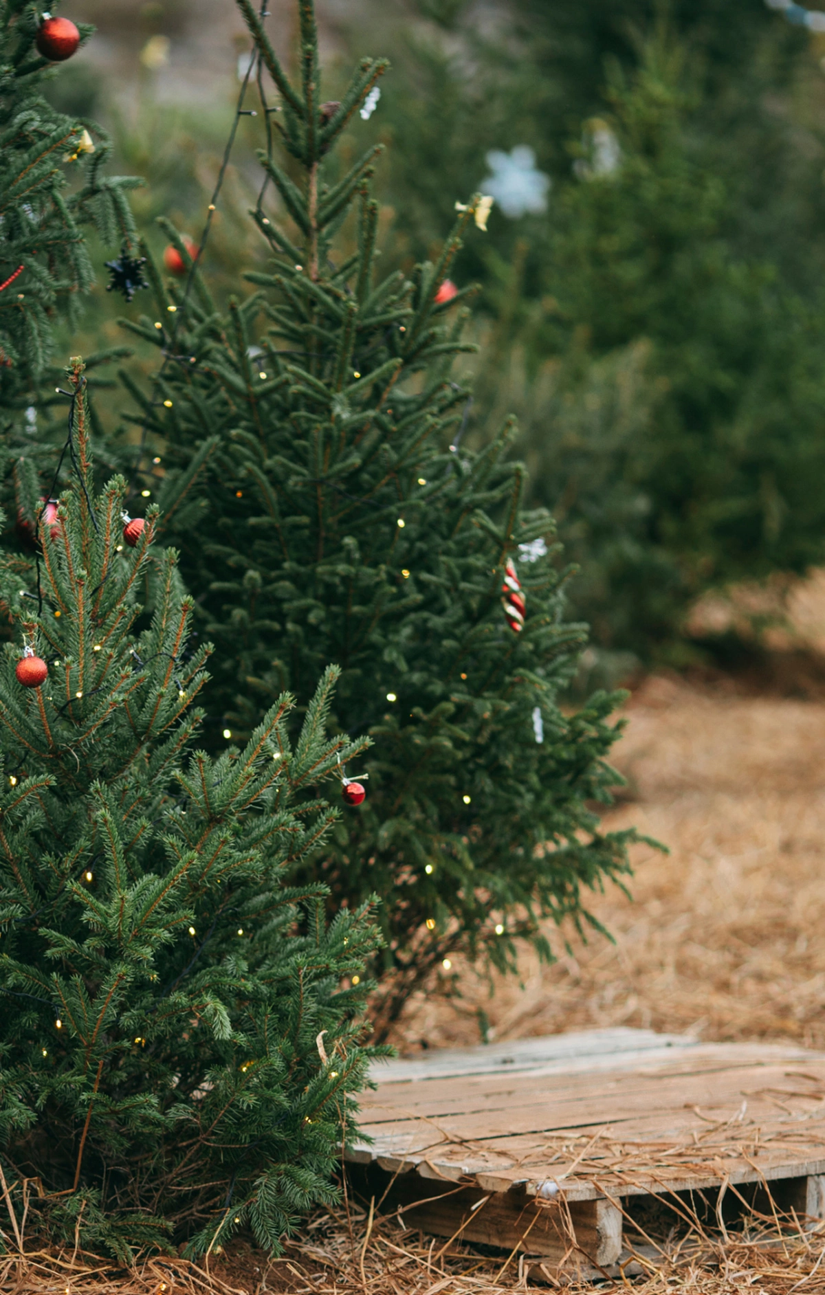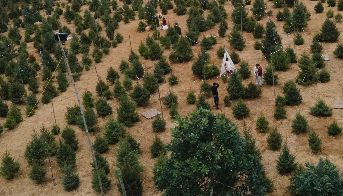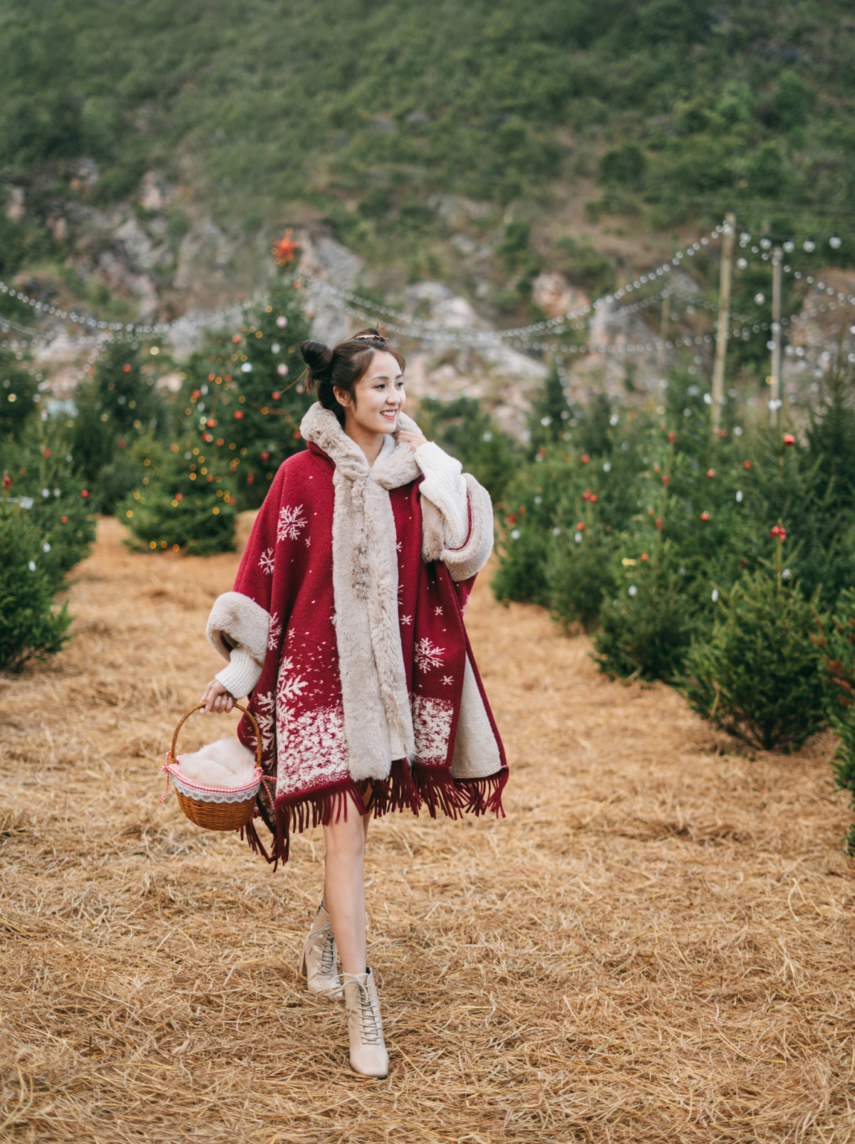 Mỗi cây thông đều được trang trí quả chuông, sao bạc, dây nơ, ruy băng... Xen kẽ giữa vườn thông tỏa hương là những cuộn rơm, căn lều, ghế gỗ... tạo thành các tiểu cảnh.
